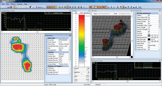 (2)可分析接觸面積的壓力分布狀況,以二壓力分布傳感器維和三維圖形顯示;