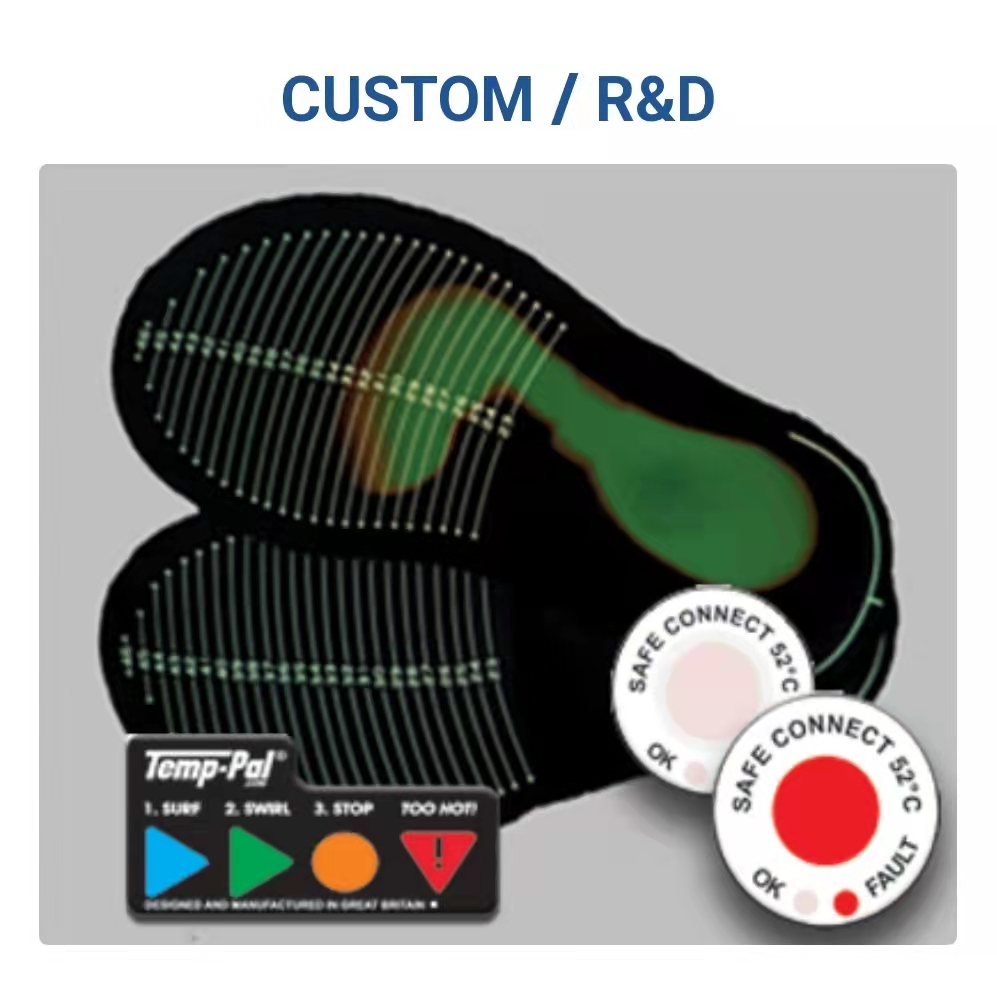 在Thermex?紙張上面生成的顏色增強圖像舉例 Thermex?是一個獨特的溫度顯示材料.如同紙張那么薄,Thermex?的顏色改變來展示在任何的兩個接觸表面的相對溫度分布.一旦暴露至溫度Thermex?立刻且地改變顏色.顏色的強度和暴露的溫度直接相關,使得Thermex?來認出高溫或者低溫區.Thermex?是便宜的,的,且可用完就丟棄的Thermex?是一種獨特的溫度指示材料。與標準紙張一樣薄,Thermex?可以改變顏色揭示任意兩個接觸面之間的相對溫度分布。在暴露于溫度下時Thermex?板材瞬間改變顏色。該顏色的強度與顏色直接相關它所暴露的溫度,允許Thermex?發現高溫或低溫區域。Thermex?價格低廉和一次性。